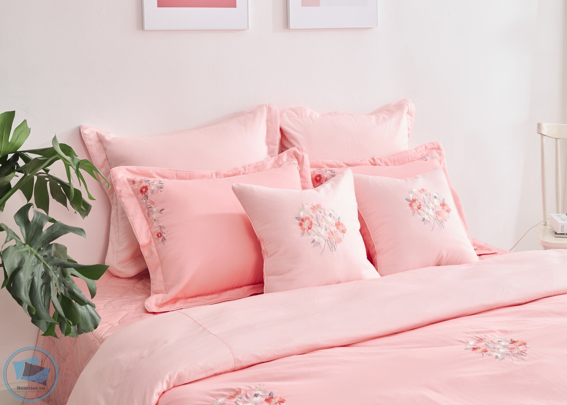 – Bộ chăn ga ESM21015 đã rất sáng tạo khi dùng hình ảnh những chùm cúc dại thêu tỉ mỉ trên nền vải hồng cam – một màu sắc vô cùng ngọt ngào, dễ thương, tinh nghịch, lãng mạn, nữ tính và dịu dàng