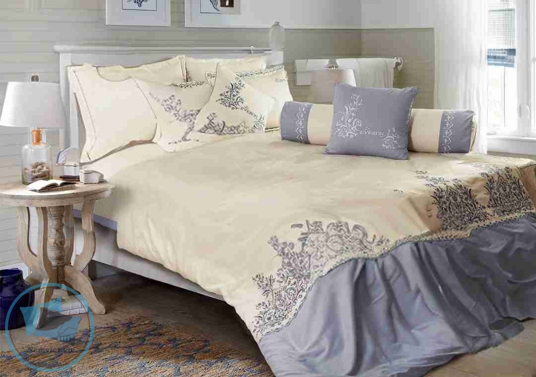 Mô tả : Họa tiết thêu được lấy ý tưởng chính của hoa văn Ấn Độ, kết hợp với hoa dây được thêu trên nền vải chính màu sữa ánh vàng, phối cùng mầu ghi sáng .Bộ chăn ga rất thích hợp với những người thích gam màu sáng giúp người sử dụng thấy mát mẻ, trẻ trung và năng động