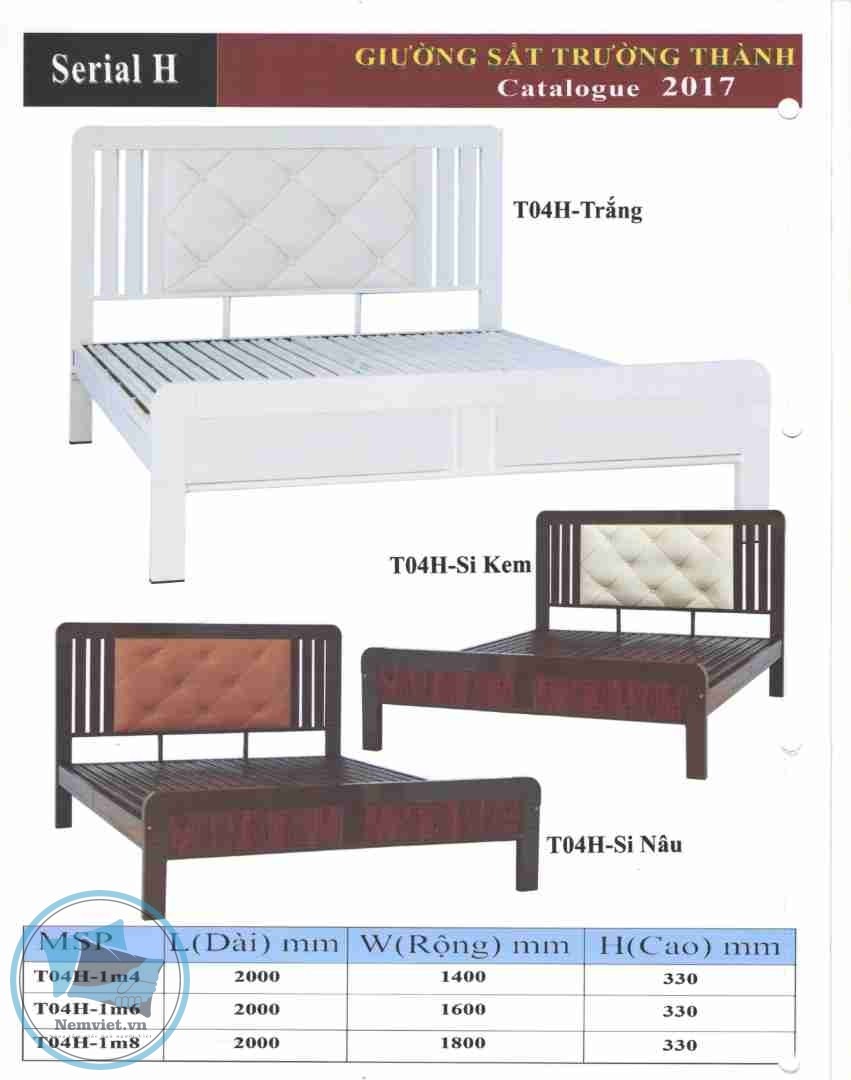 Nệm Việt là nhà phân phối các loại giường sắt Trường Thành đủ mọi kích cỡ, kiểu dáng và màu sắc phù hợp với mọi gian phòng. Bạn có thể lựa chọn giường sắt Trường Thành cho căn phòng bài trí sang trọng hiện đại đến các không gian cổ kính, trang trọng. Giường sắt Trường Thành tôn thêm vẻ đẹp cho ngôi nhà bạn.