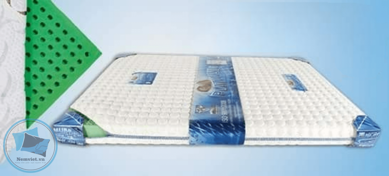 – Cao su thiên nhiên bao phủ bông ép nằm bên trong nệm giúp nệm vừa mềm mại vừa bền và êm khi sử dụng.