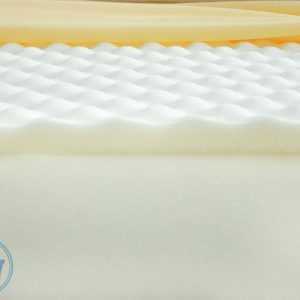 - Lớp PU Foam bên trên: Có độ dày 2,5cm sở hữu cấu trúc lượn sóng (profile cutting) giúp phân đều áp lực và massage nhẹ nhàng cho toàn bộ cơ thể trong suốt giấc ngủ. Đồng thời tăng hiệu quả thoát khí, kích thích tuần hoàn máu lưu thông tốt hơn.