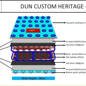 + Điểm đặc biệt là Heritage sử dụng lò xo Bonell nhiệt luyện chỉ cao 10cm, giúp giảm thiểu nguy cơ xẹp lún mà vẫn đảm bảo tiêu chuẩn đàn hồi.